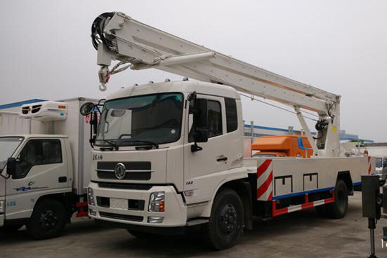 作业臂液压举升专用装置,换向阀和液压油缸均采用国内知名品牌,换向平稳,操作灵活方便;转台、工作斗双工位操作;支腿与工作臂互锁,安全可靠,防止误操作;H型支腿,跨距大、稳定性好,支腿既可独立伸缩、又可联动,装有支腿报闪灯,用于作业时支腿示廓、发出光报警信号。